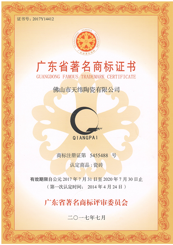 喜訊|強牌陶瓷再次榮獲“廣東省著名商標”稱號!